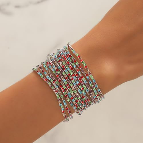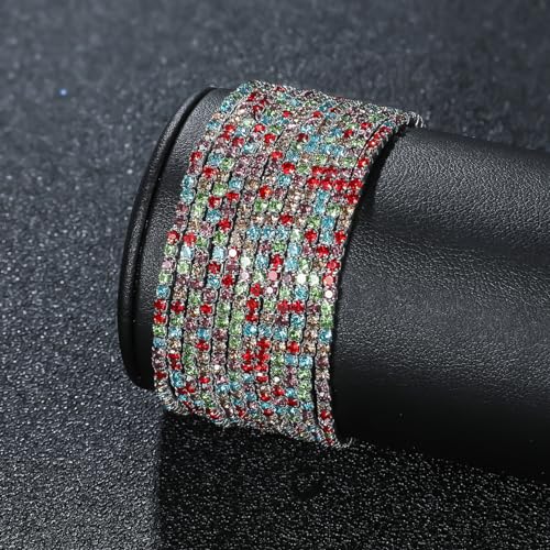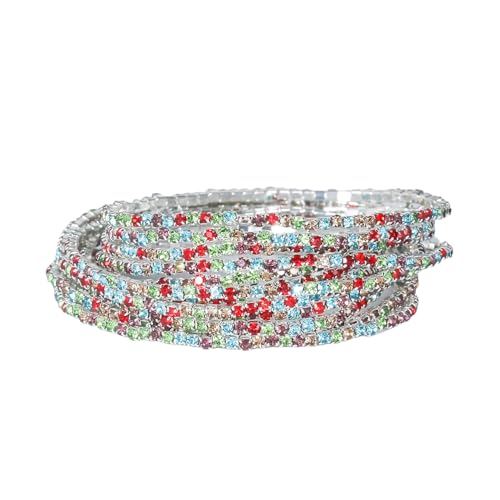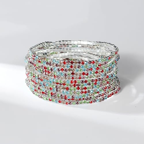 generic - 9 قطع سوار مطاطي مرصع باحجار الراين للنساء من سوبرا ديامانتو، سوار بوهو متعدد الطبقات قابل للتكديس للنساء، مجموعة اساور من حجر الراين، مجوهرات الزفاف هدية عيد الميلاد (JB3132S-CF)