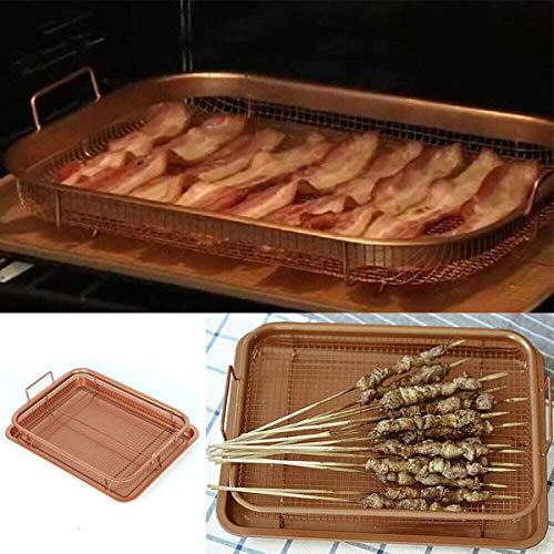 Generic - صينية بطاطس مقلية فرنسية من سوبريكرن، سلة بطاطس مقلية فرنسية مقلية، صينية للخبز مطلية بالنحاس مقاومة للالتصاق، سلة شرائح البطاطس، بني