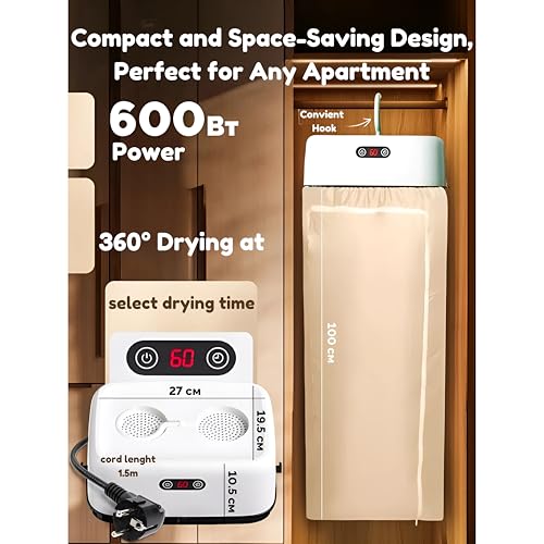 SUPREMIUM - مجفف غسيل محمول من سوبريميوم، 600 واط كهربائي صغير مع شنطة قابلة للطي، مؤقت سفر صغير للملابس والمركبات الترفيهية والشقة والاستخدام المنزلي، مثالي للملابس الرقيقة