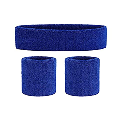 SUPRO - رباط للرأس وسوار للمعصم للرجال والنساء من سوبرو، أربطة رأس رياضية للرجال، اكسسوارات للتدريب، رباط رأس ممتص للعرق وسوار معصم للجري وصالة الألعاب الرياضية، رباط شعر للجنسين، لون أزرق، زوج واحد
