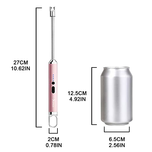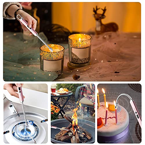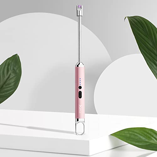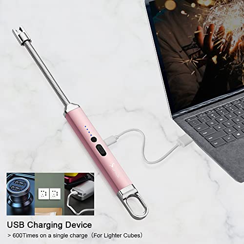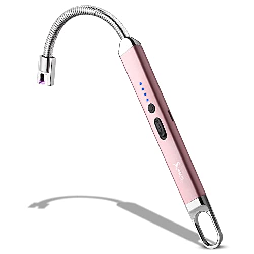 SUPRUS - ولاعة كهربائية مقوسة قابلة لإعادة الشحن بمنفذ USB مع مفتاح أمان ورقبة مرنة 360 درجة بدون لهب، ولاعات طويلة للشموع والتخييم والطبخ من سوبريس (ذهبي وردي)