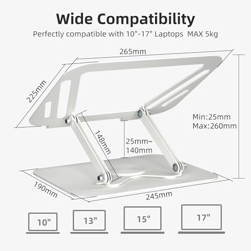 suptek - حامل لابتوب وكمبيوتر للمكتب LS001W مريح قابل للطي مع ارتفاع قابل للتعديل، رافع مكتب جيد التهوية متوافق مع ماك بوك اير وبرو وديل اكس بي اس ومعظم أجهزة اللابتوب مقاس 11 إلى 17 بوصة من سوبتيك (أبيض)