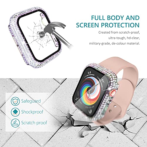 Surace - سوراس شاشة حماية من الزجاج المقوى لجراب ساعة ابل مع ساعة ابل سلسلة 6/5/4/3/2/1 - 40 ملم، قوس قزح، شفاف
