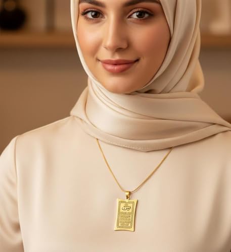 Generic - قلادة ذهبية قرآنية عربية مصقولة عيار 18 قيراط، سلسلة عصرية 45 سم للارتداء اليومي والرسمي من سوره يس