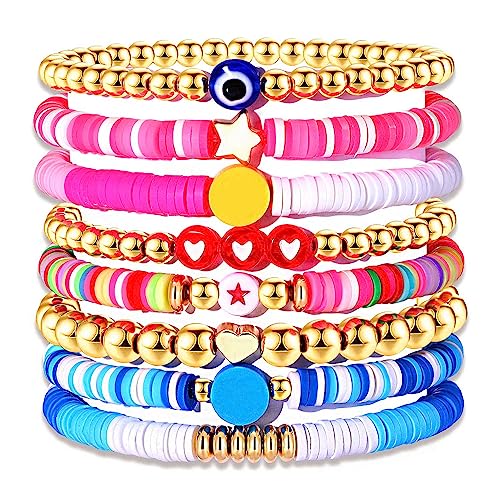 generic - اساور هيشي للنساء من سيرفر هيشي قابلة للتكديس بتصميم قرص فينيل بالوان قوس قزح، اساور قابلة للتمدد بطبقات مرنة للصداقة، مجوهرات بوهو للصيف والشاطئ (تصميم D3)