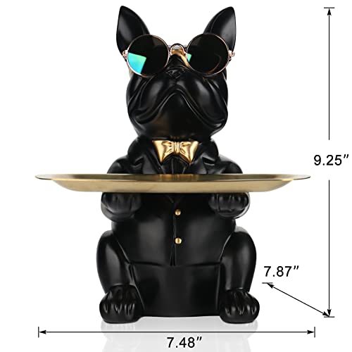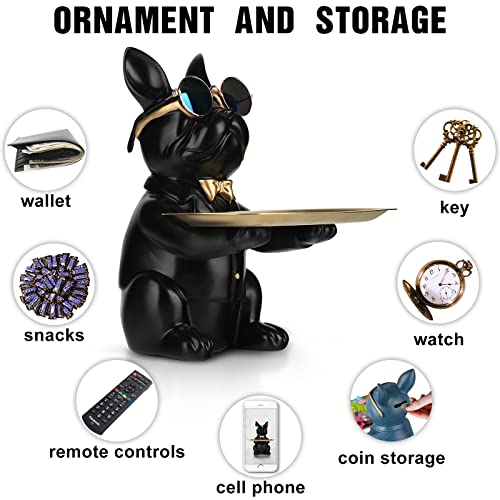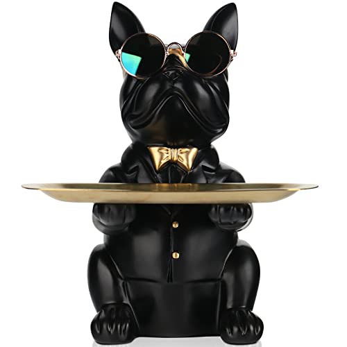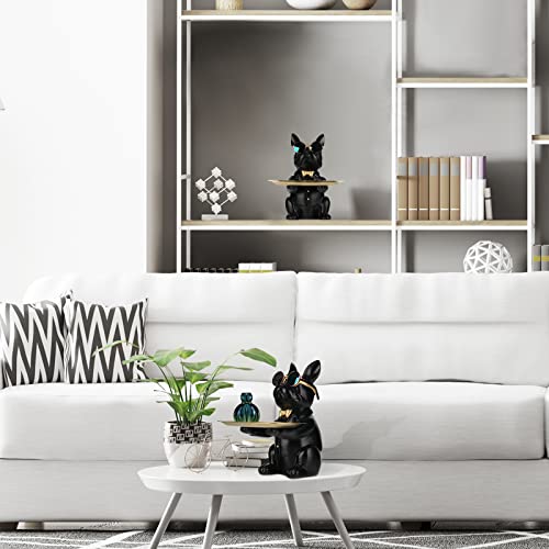 suruim - تمثال مع صينية تخزين للمكتب من الراتنج بتصميم كلب بولدوج، تمثال لتخزين العملات المعدنية على شكل حيوان منحوت لتزيين الطاولة، ديكور طاولة متعدد الاستخدامات للمكتب والمنزل من سيريوم (أسود)