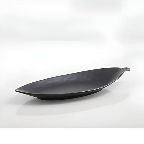 Generic - حامل سوشي - تصميم متموج أنيق، طبق خزفي طويل على شكل ورقة، طبق سوشي قوي وفني للطعام الراقي أو الحفلات (1)