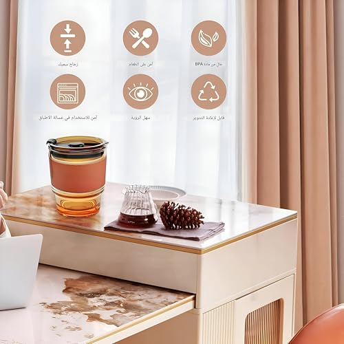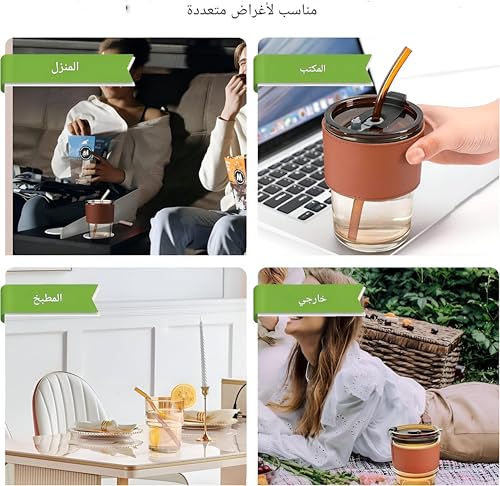 - كوب زجاجي يومي متعدد الأغراض -- خفيف الوزن ومتين وصحي وبسيط، مثالي لمنزلك أو مكتبك أو النزهة أو التخييم أو أثناء التنقل، كما أنه مثالي لمشروباتك الساخنة أو الباردة والقهوة والعصير والعصائر والحليب والشاي. كما أنها هدية رائعة لأولئك الذين يحتاجون إلى الوصول إلى أهداف شرب الماء.