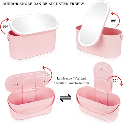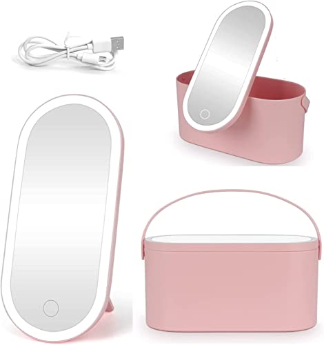 Suteng - منظم مكياج للسفر مع مرآة حقيبة مستحضرات تجميل محمولة ضوء LED قطار لتخزين المكياج للنساء والفتيات بينك زهري من سوتنج أكريلونيتريل بوتادين ستايرين