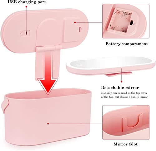 - 【صندوق تخزين كبير 2 في 1】 صندوق منظم مكياج للسفر مع مرآة بإضاءة LED مناسب لتخزين مستحضرات التجميل والمجوهرات. يأتي صندوق المكياج 2 في 1 الخاص بنا مع مرآة، والتي يمكن استخدامها كصندوق تخزين أو مرآة مكياج. وفر مساحة أكبر لأمتعتك عند السفر. يحافظ على مكتبك مرتبًا في المنزل. (لا تشمل البطارية)