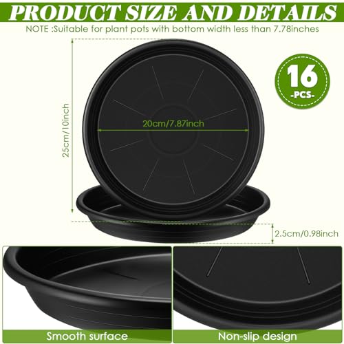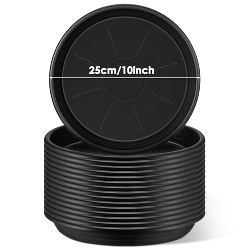 Suttmin - أوعية أصيص زراعة للنباتات والزهور من البلاستيك سوتمين صواني تنقيط متينة وقوية وعاء دائري كبير سميك للتنقيط للحديقة في أماكن داخلية وخارجية 25.4 سم 16 قطعة