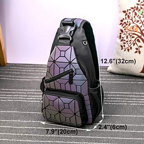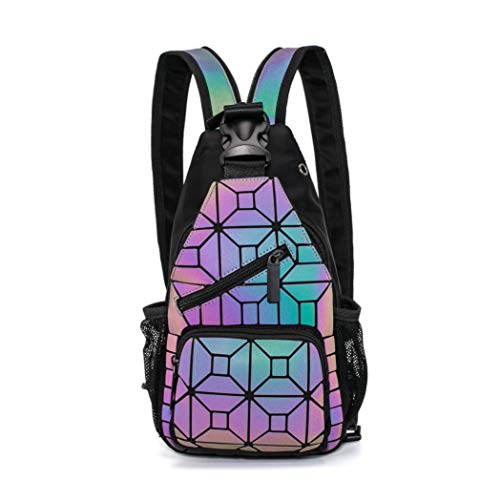 RANSUU - شنطة ظهر هندسية مضيئة وعاكسة من لوميكاي وشنطة كروس كتف بريسم للنساء والرجال رينبو One_Size ، 20