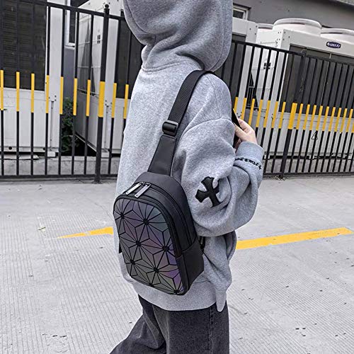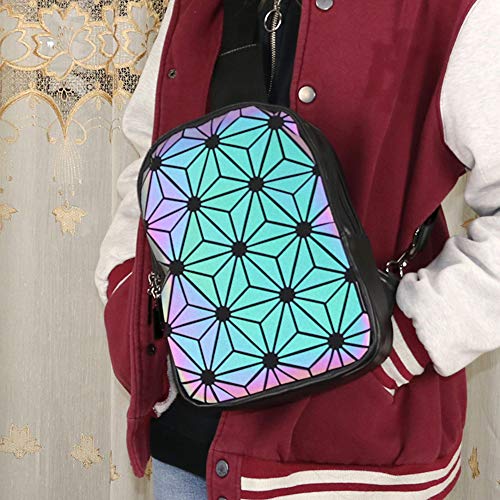 Suuran - شنطة ظهر بتصميم هندسي مضيء وعاكسة ثلاثية الابعاد كروس غير قابلة للانحناء للنساء والرجال رقم B الوان متعددة رينبو One_Size
