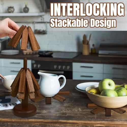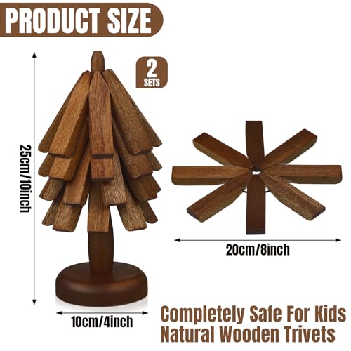 Suzile - مجموعة حوامل اواني مصنوعة من الخشب من 4 طبقات على شكل شجرة بقاعدة اكواب خشبية للطاولة قابلة للطي ومقاومة للحرارة لاباريق الشاي والمقالي والاطباق الساخنة وطاولة المطبخ من سوزيل 2 قطعة