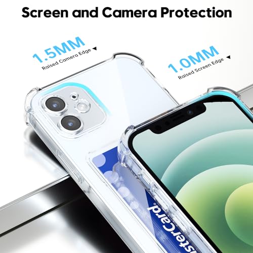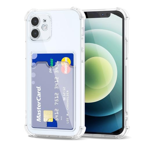 Svanove - حافظة حماية بتصميم محفظة لهاتف ايفون 12 من سفانوف مع حامل بطاقات، حافظة شفافة بفتحة لبطاقة الائتمان، غطاء كاميرا صلب ورفيع ورفيع من مطاط السيليكون للنساء والرجال، شفاف