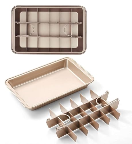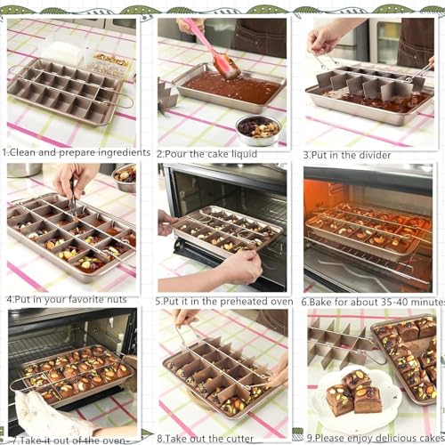 - تصميم منفصل مبتكر: مجهزة بفاصل من الستيل، قم بتقطيع كعكة البراوني بسهولة إلى 18 قطعة موحدة (حوالي 2 × 2.6 انش لكل قطعة).