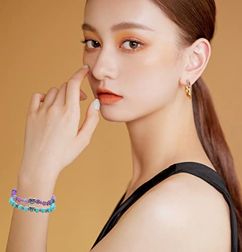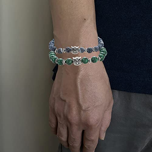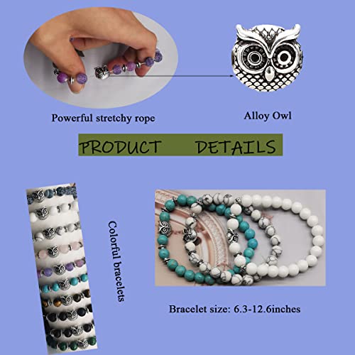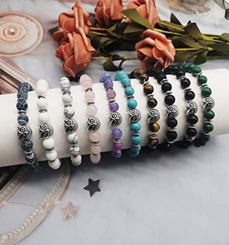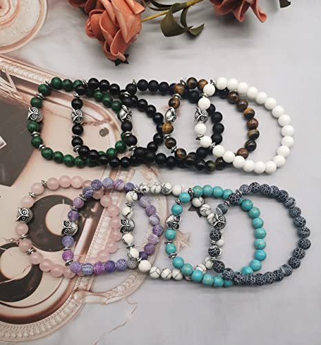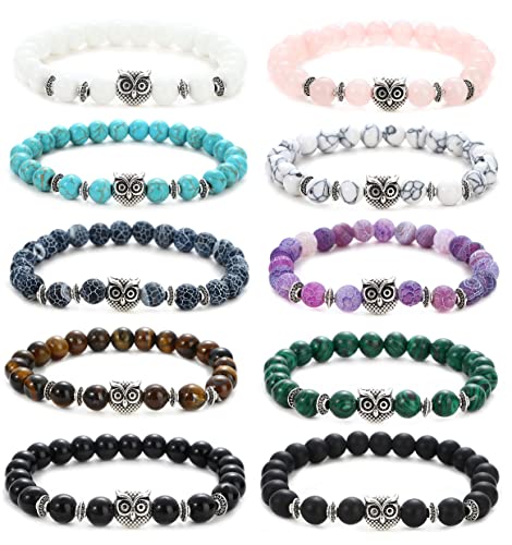 Svovin - مجموعة اساور خرز على شكل بومة 8 ملم للنساء والرجال من 10 قطع من احجار الشاكرا العلاجية المرنة والدائرية وحجر الطاقة الروحية، اساور الحظ الملونة الكريستالية