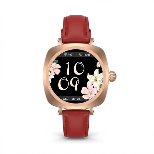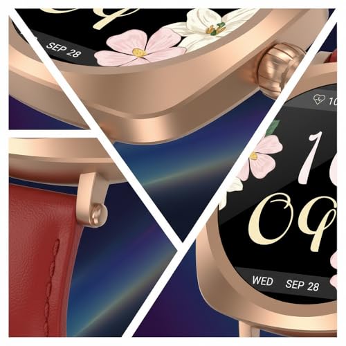 - تصميم أنيق وعصري: متوفرة بلونين ذهبي مع حزام جلد أحمر وفضي مع حزام جلد أبيض، متوافقة مع iOS 9.0+ وAndroid 5.0+ وHarmonyOS 2.0 مع شحن مغناطيسي سريع