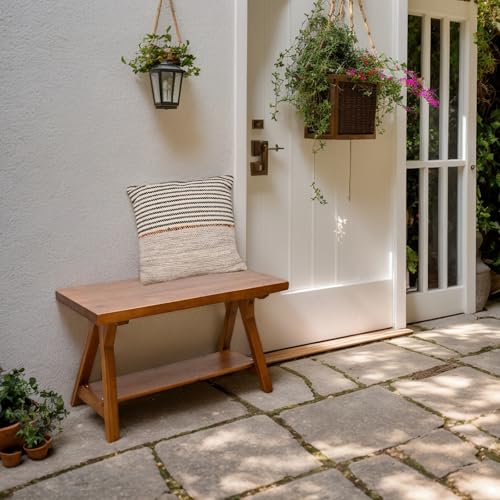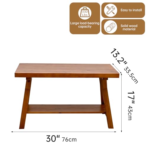 SwallowLiving - كرسي تخزين بتصميم ريفي وكرسي مدخل من الخشب الصلب لغرفة المعيشة وغرفة الطعام والممر وكرسي داخلي بلمسة نهائية من الخشب الطبيعي من سوالو ليفينغ، مقاس 76.2 سم
