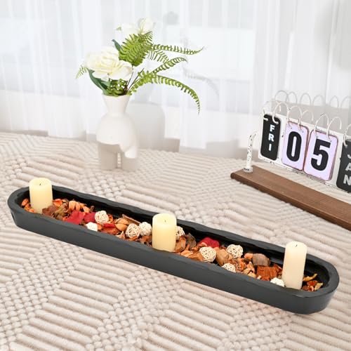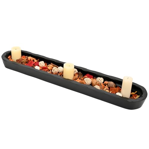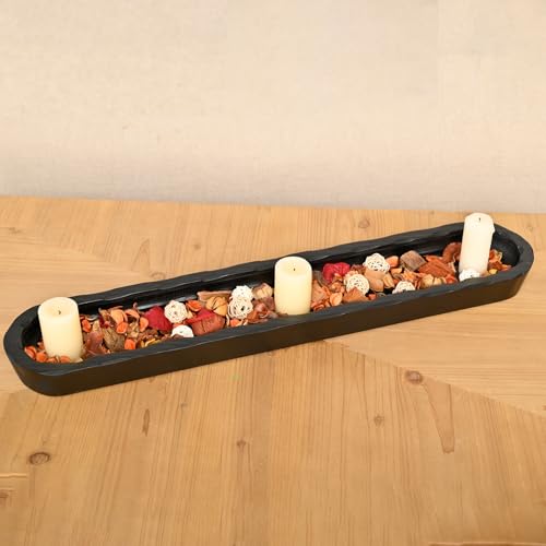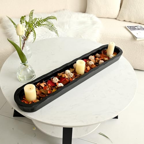 SwallowLiving - سوالو ليفينغ وعاء عجين خشبي مزخرف بنمط ريفي منحوت يدويًا، قطعة مركزية كبيرة على شكل خبز مقاس 30 انش تقريبًا، وعاء خشبي طويل لديكور المنزل