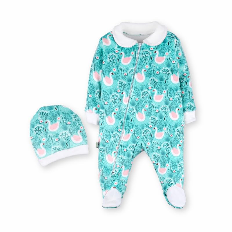 Generic - سالوبيت سوان ليك - قطيفة عالية الجودة - لون تركواز - مقاس 0-3 اشهر