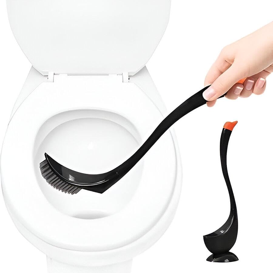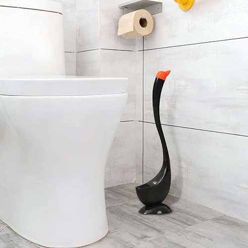 Generic - فرشاة مرحاض على شكل بجعة مع شعيرات كثيفة ناعمة ومقبض منحني، مثالية لإزالة البقع العنيدة مع حامل (أسود)