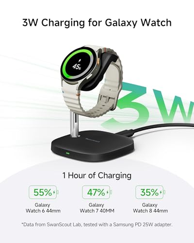 SwanScout - حامل شحن لساعة سامسونج من سوانسكاوت، شحن سريع لساعة سامسونج جالكسي 7/الترا/6/6 كلاسيك/5/5 برو/4/3/اكتيف 2، سوان سكاوت 505S