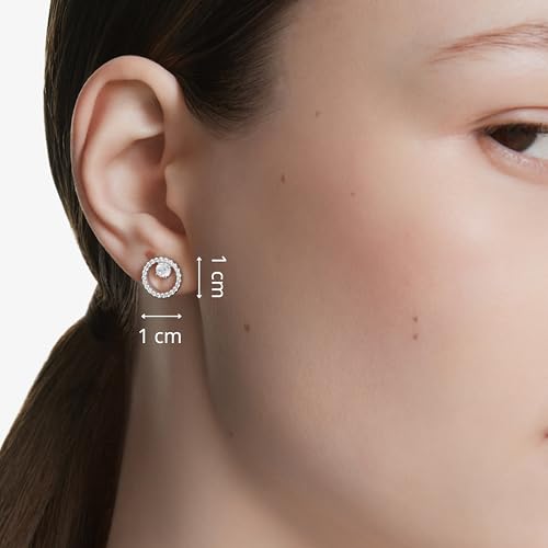 Swarovski - سواروفسكي اقراط مرصعة من كونستيلا، دائرة، كريستالات بيضاء دائرية في اعداد مطلية بالروديوم، مقاس واحد، مطلية بالروديوم، زركونيا مكعب، كريستال