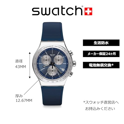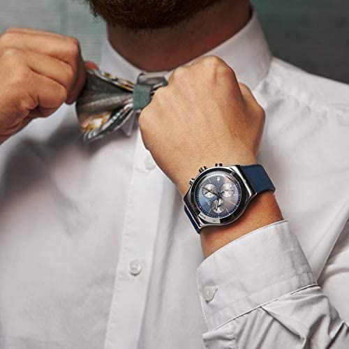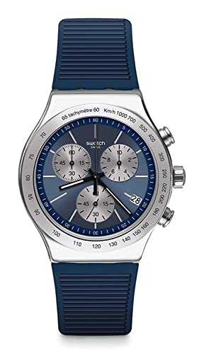 Swatch - ساعة يد كاجوال للرجال من سواتش انالوج بعقارب بسوار المطاط فضي موديل YVS475