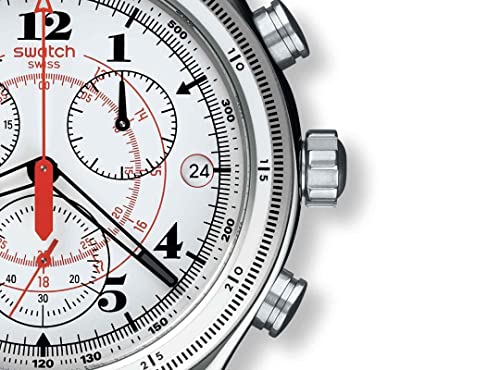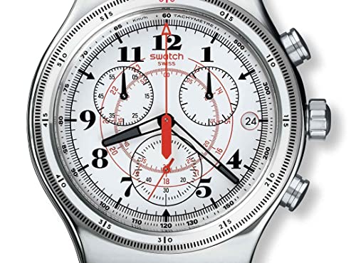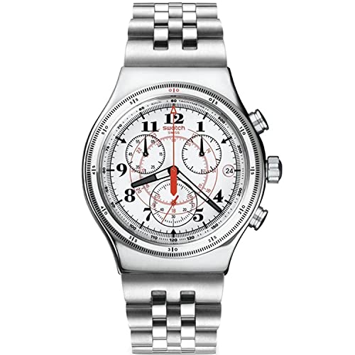 Swatch - ساعة كاجوال بشاشة انالوج بعقارب وسوار ستانلس ستيل للنساء من سواتش- لون فضي- YVS414GD، بمينا أبيض