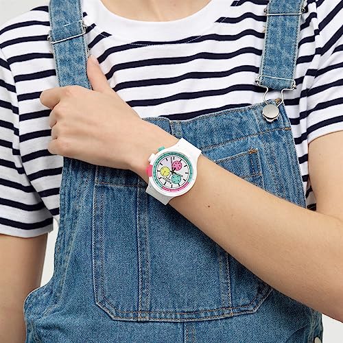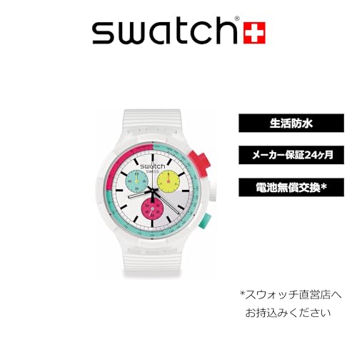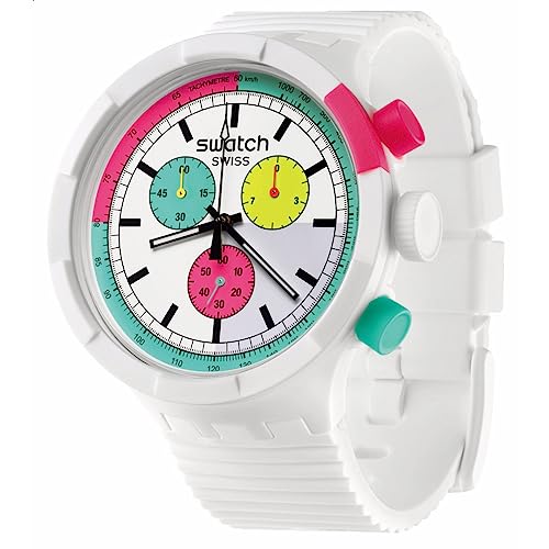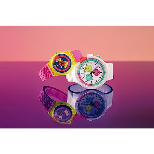 Swatch - ساعة بيورتي اوف نيون من السيراميك الحيوي بمينا كبير وعريض من سواتش، موديل SB06W100