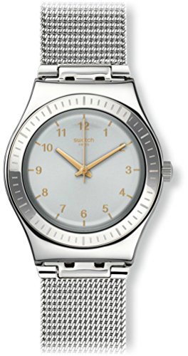 Swatch - ساعة بحركة كوارتز وعرض أنالوج وسوار فولاذ مقاوم للصدأ للرجال من سواتش، فضي، YLS187M