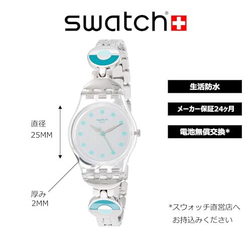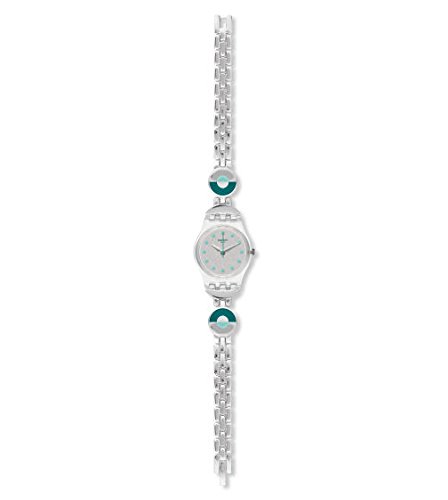 Swatch - ساعة يد انالوج دائرية من الفولاذ المقاوم للصدأ بمينا خضراء للنساء سواتش LK377G فضي بسوار متعدد الألوان