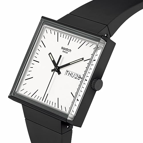 Swatch - ساعة مونتري وات اف من سواتش وسوار أسود للجنسين