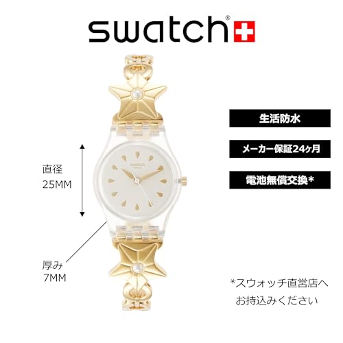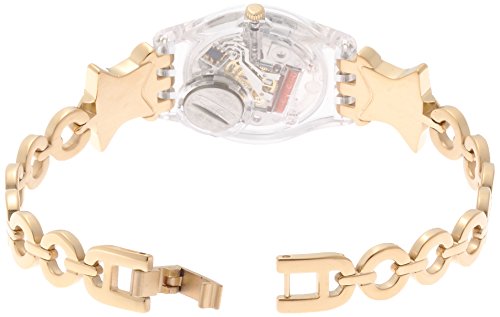 Swatch - ساعة حريمي أصلية بمينا بيج وسوار ستانلس ستيل LK366G من سواتش، انالوج بعقارب