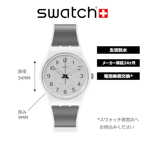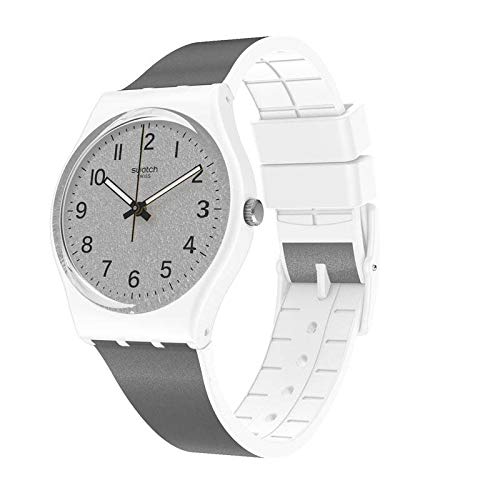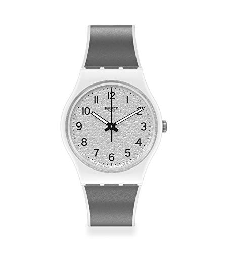 Swatch - ساعة بلاستيك دائرية انالوج بعقارب ومينا فضي بمؤشرات مختلفة اللون من سواتش - للنساء