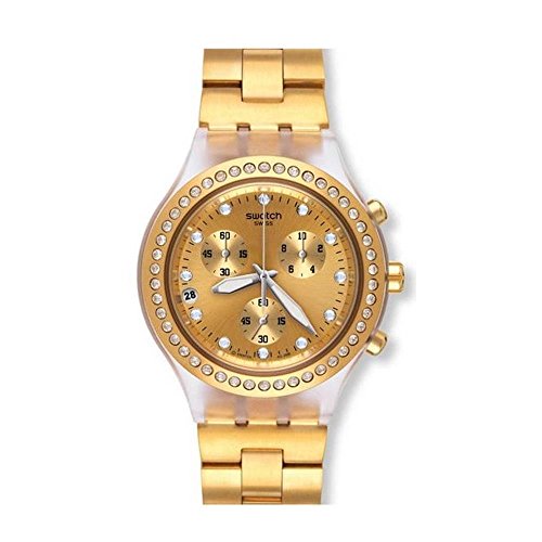Swatch - ساعة انالوج دائرية من الستانلس ستيل SVCK4084G بإطار مزين بأحجار للنساء سواتش - ذهبي
