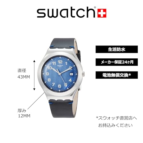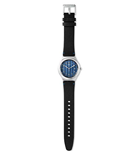 Swatch - ساعة جلد دائرية للجنسين بانالوج ومينا ازرق من سواتش YWS438 للرجال - اسود, أسود، انالوج بعقارب
