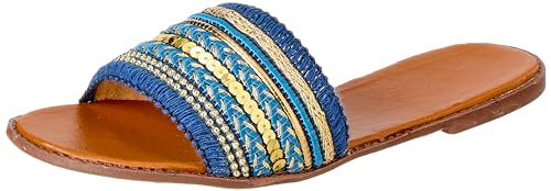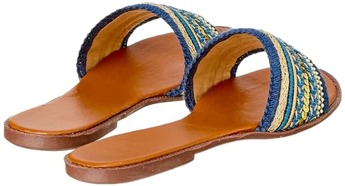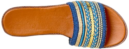SWAY - شبشب بكعب 1 سم من قماش الدانتيل للنساء من سواي، شريط مطرز بنمط ارابيسك، لون أصفر خردلي، مقاس 40