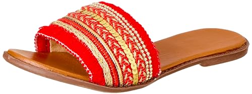 SWAY - شبشب قماش دانتيل 1 سم وحزام مطرز بنمط أرابيسك، أحمر مقاس 39 EU من سواي