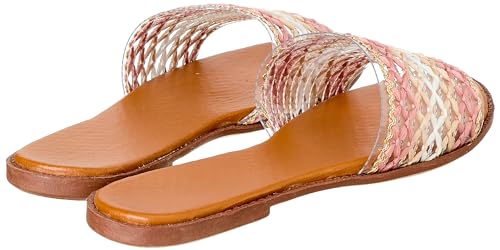 SWAY - شبشب قش/قماش بتصميم حزام شبكي مع كعب 1 سم من سواي، أبيض/وردي، 37 EU