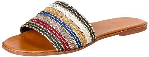 SWAY - شبشب من القماش والقش بتصميم مخطط وكعب 1 سم من سواي، بيج وأسود، EU 39