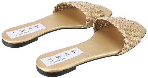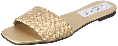 SWAY - شبشب مسطح بنعل داخلي مريح ومبطن بالاسفنج وجزء علوي من جلد صناعي ناعم ومضفر من سواي، لون ذهبي، مقاس 40 EU