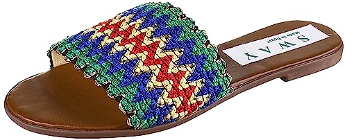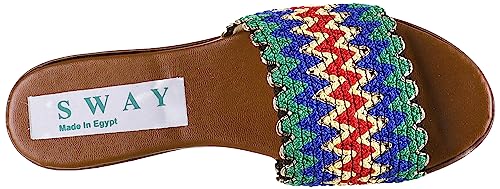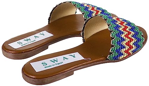 SWAY - شبشب فلات من سواي، بنعل داخلي مبطن من الاسفنج لراحة مذهلة، وبجزء علوي من الجلد الصناعي الناعم بتصميم مضفر، لون أصفر مسطرد وأخضر، مقاس 39 EU