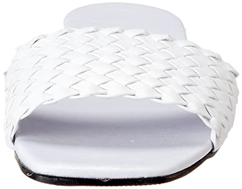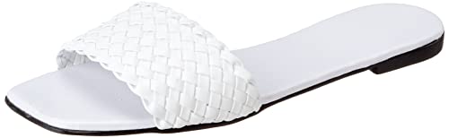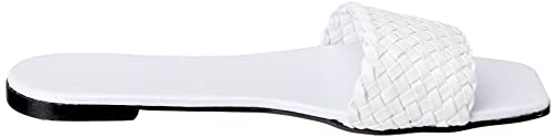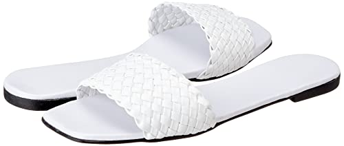 SWAY - شبشب بنعل مسطح بتصميم ببطانة داخلية اسفنجية وجزء علوي مضفر من جلد صناعي من سواي لراحة مذهلة، لون ابيض، مقاس 41 EU