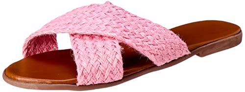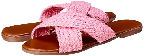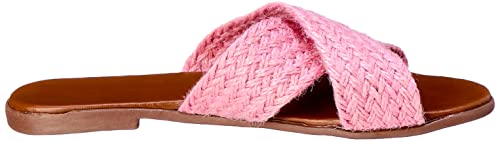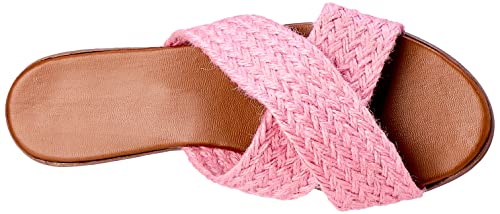 SWAY - شبشب فلات بنعل داخلي مبطن اسفنجي لراحة مذهلة بتصميم متقاطع من القش الطبيعي من سواي، لون بينك، 37 EU