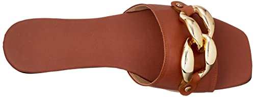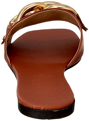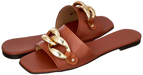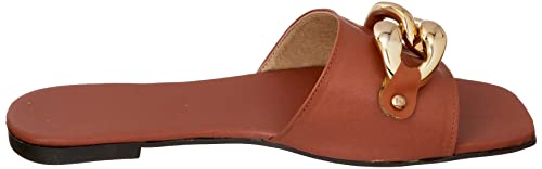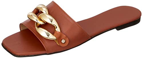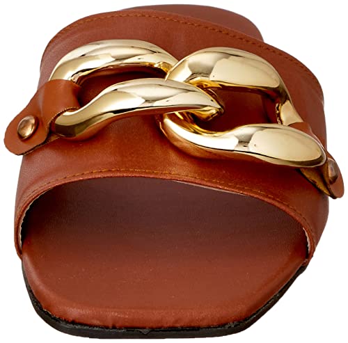 SWAY - حذاء مسطح بنعل داخلي اسفنجي مبطن لراحة مذهلة من سواي، يتميز بجزء علوي سادة من البولي يوريثين ومزين بسلسلة، مقاس 40 EU بلون هافان
