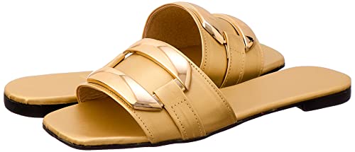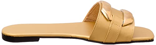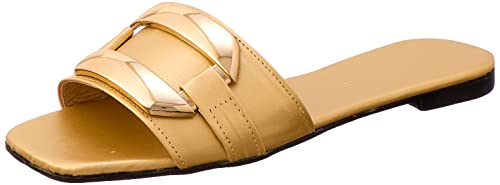 SWAY - نعل داخلي مسطح مبطن اسفنجي لراحة رائعة وجزء علوي مصنوع من جلد صناعي ناعم بزينة بسيطة من سواي, جلد صناعي ذهبي, 38 EU، للنساء