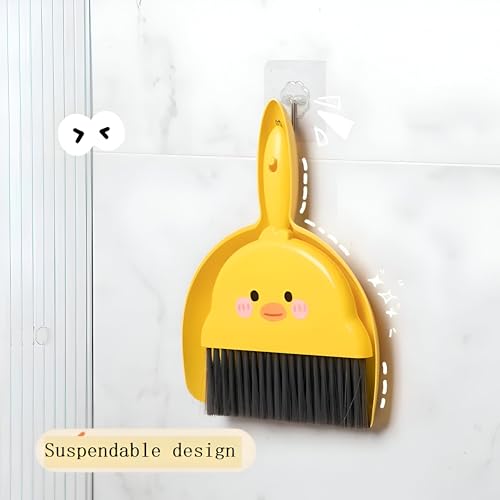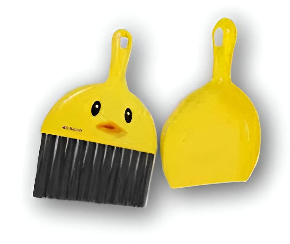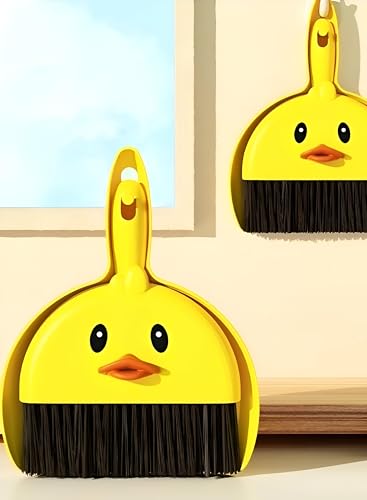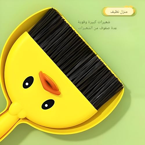 Generic - اداة كنس - مكنسة صغيرة ومتينة مع جاروف بلمسة نهائية صفراء ولمسة نهائية على شكل بطة، توفر الراحة والأناقة لتنظيف فعال لأسطح الأرضيات المختلفة