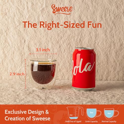 Sweese - سويز اكواب اسبريسو زجاجية قهوة معزولة بجدار مزدوج - مجموعة من 4 سعة 5 اونصة مثالية للاسبريسو والكابتشينو والشاي رقم 4602 زجاج سيراميك